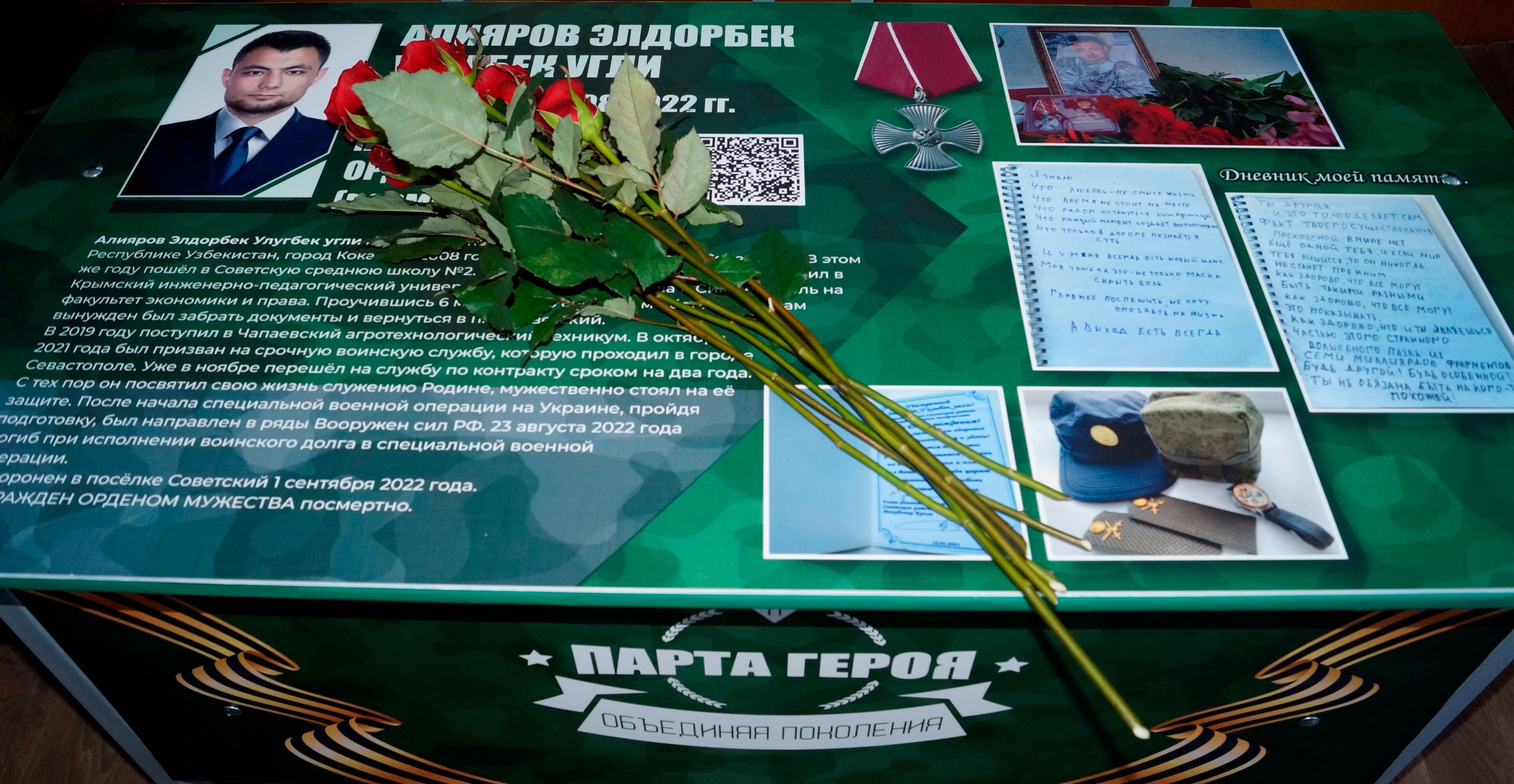 Сегодня в Советской средней школе № 2 имени Героя Советского Союза Петра Петровича Исаичкина состоялось торжественное открытие «Парты Героя» в честь выпускника школы Алиярова Элдорбека Улугбек угли, погибшего в ходе специальной военной операции.