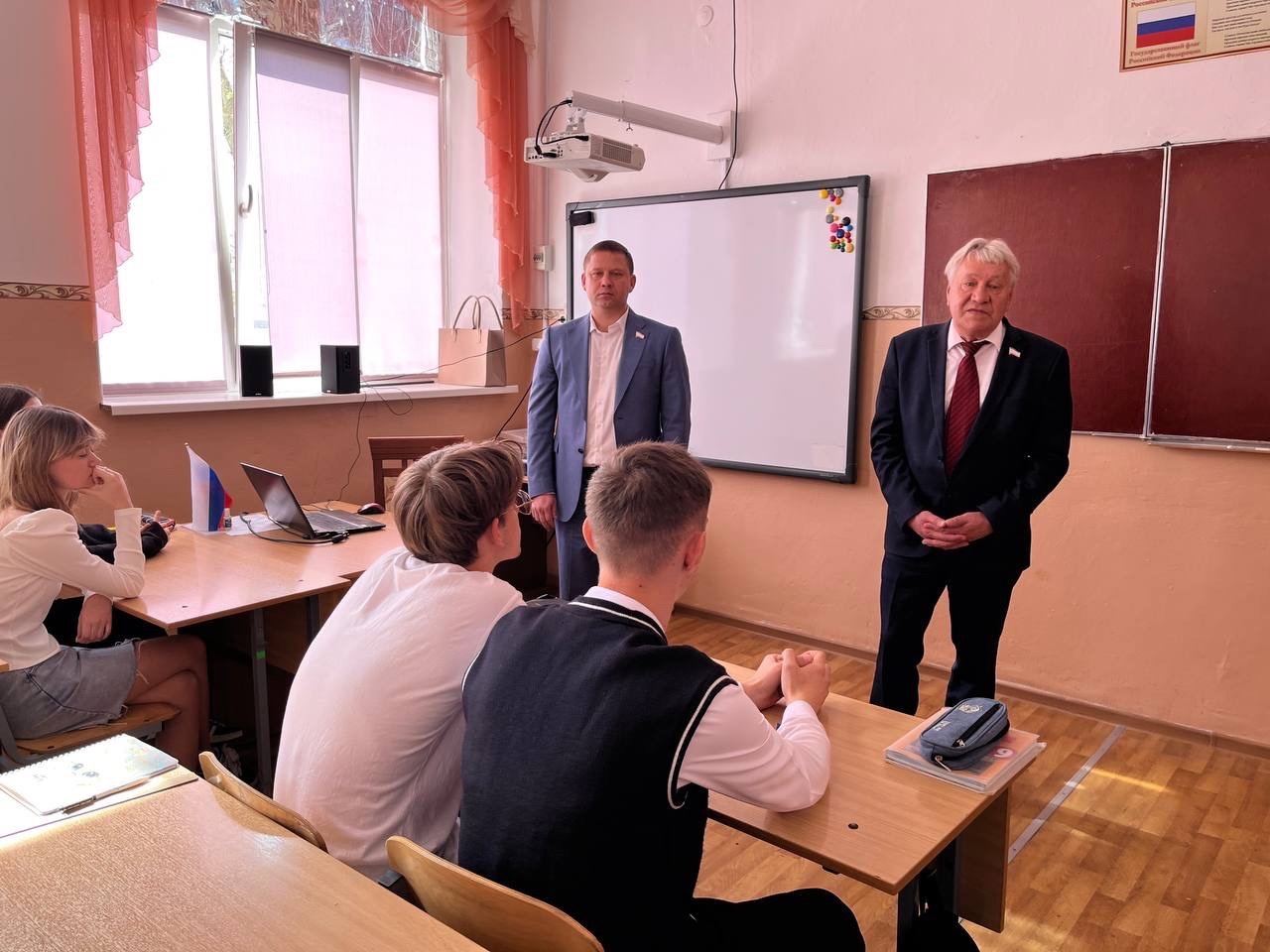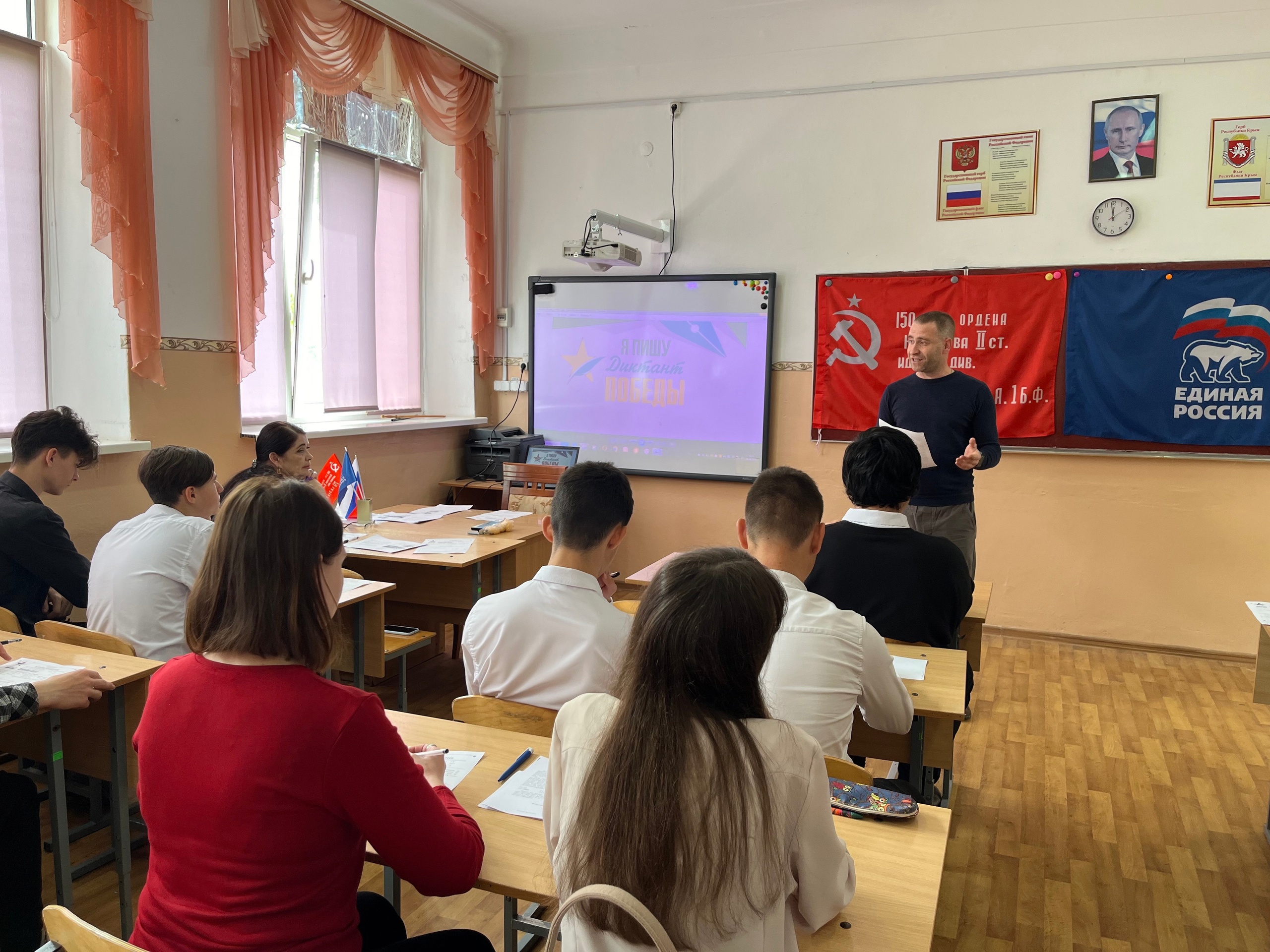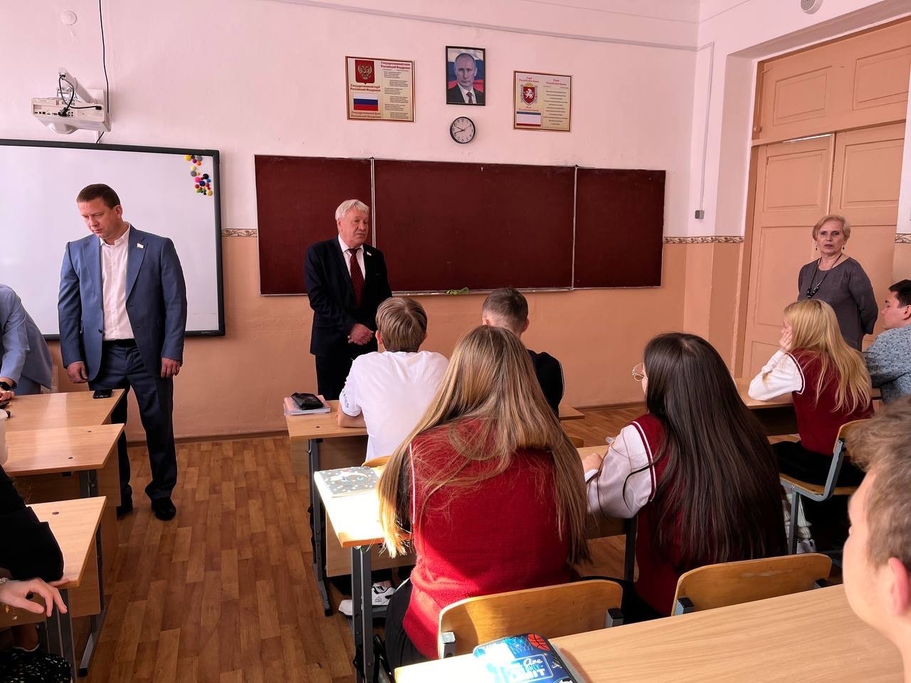 В преддверии этой значимой для всех нас даты, сотрудники Районного историко-краеведческого музея провели встречу учащихся 10 класса МБОУ «Советская СШ №2 им. Героя Советского Союза П.П. Исаичкина» с жителями Советского района: Данчуком Василием Михайловичем, участником Афганской войны, и Булатовым Константином, участником специальной военной операции на Украине - «Имею честь служить тебе, Россия».