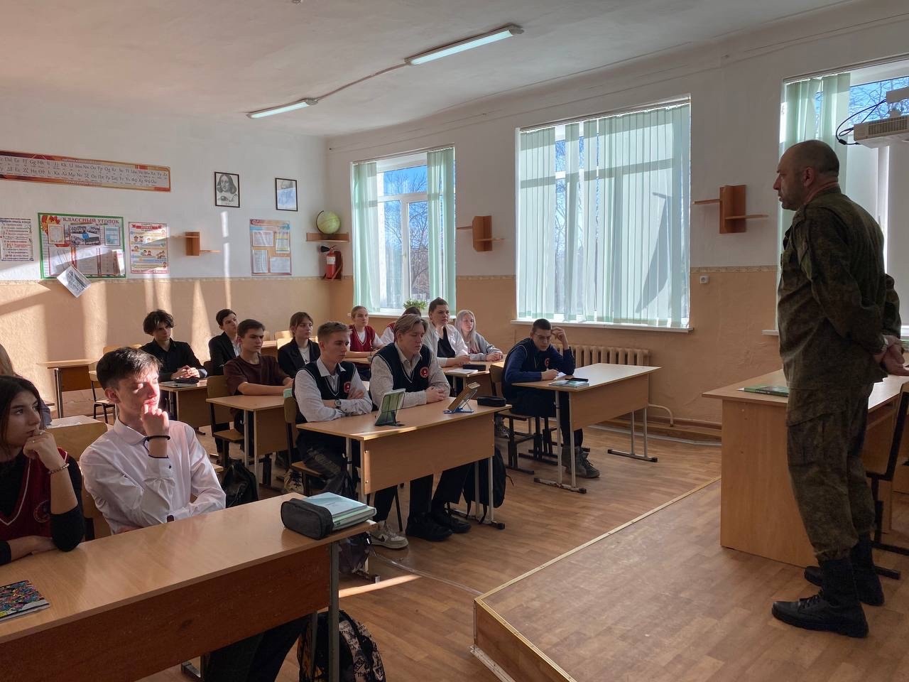 1 февраля в МБОУ «Советская СШ №2 им. Героя Советского Союза П. П. Исаичкина» прошла встреча учеников 10 класса с участником СВО—Гончаровым Иваном Александровичем.