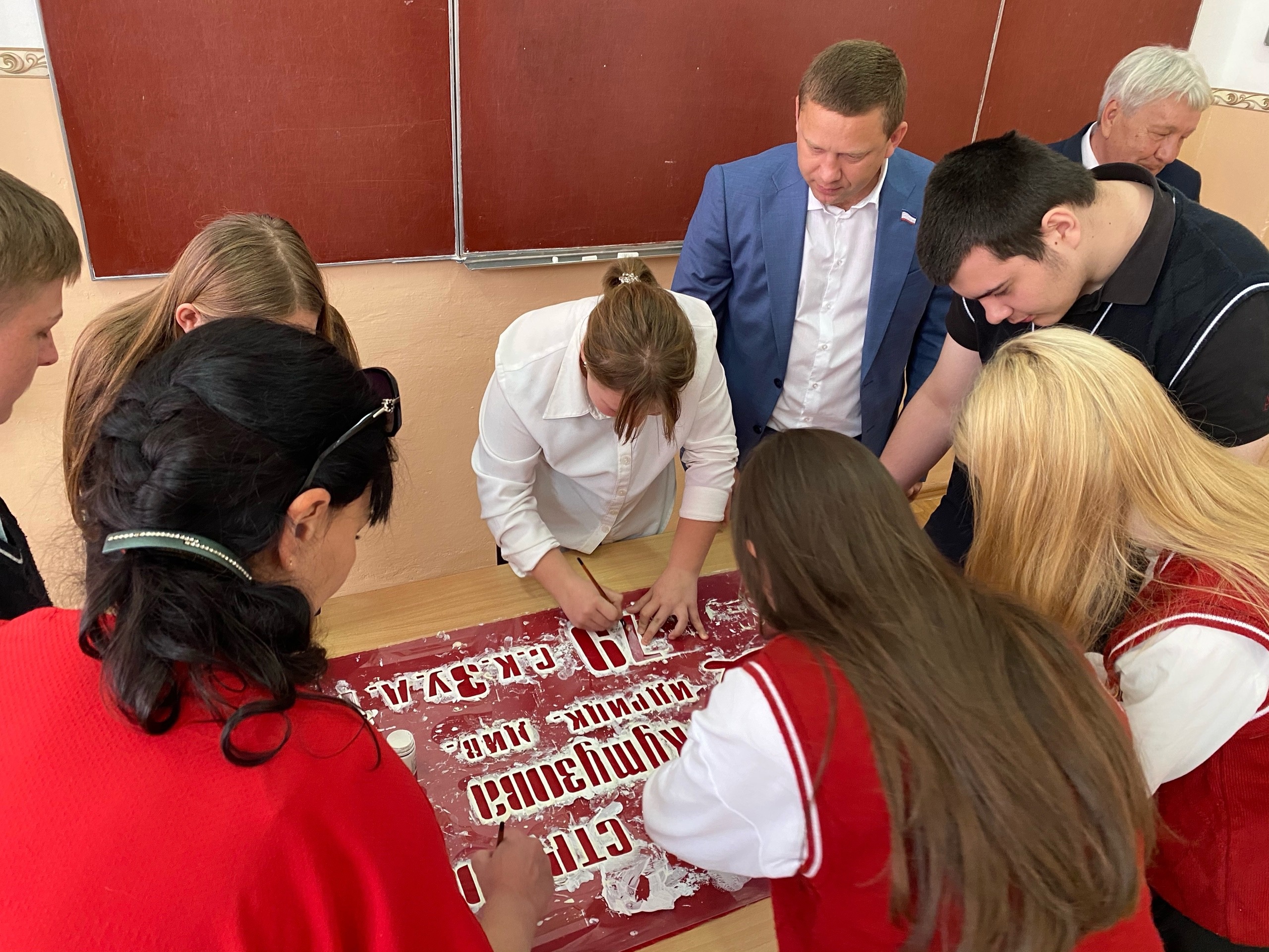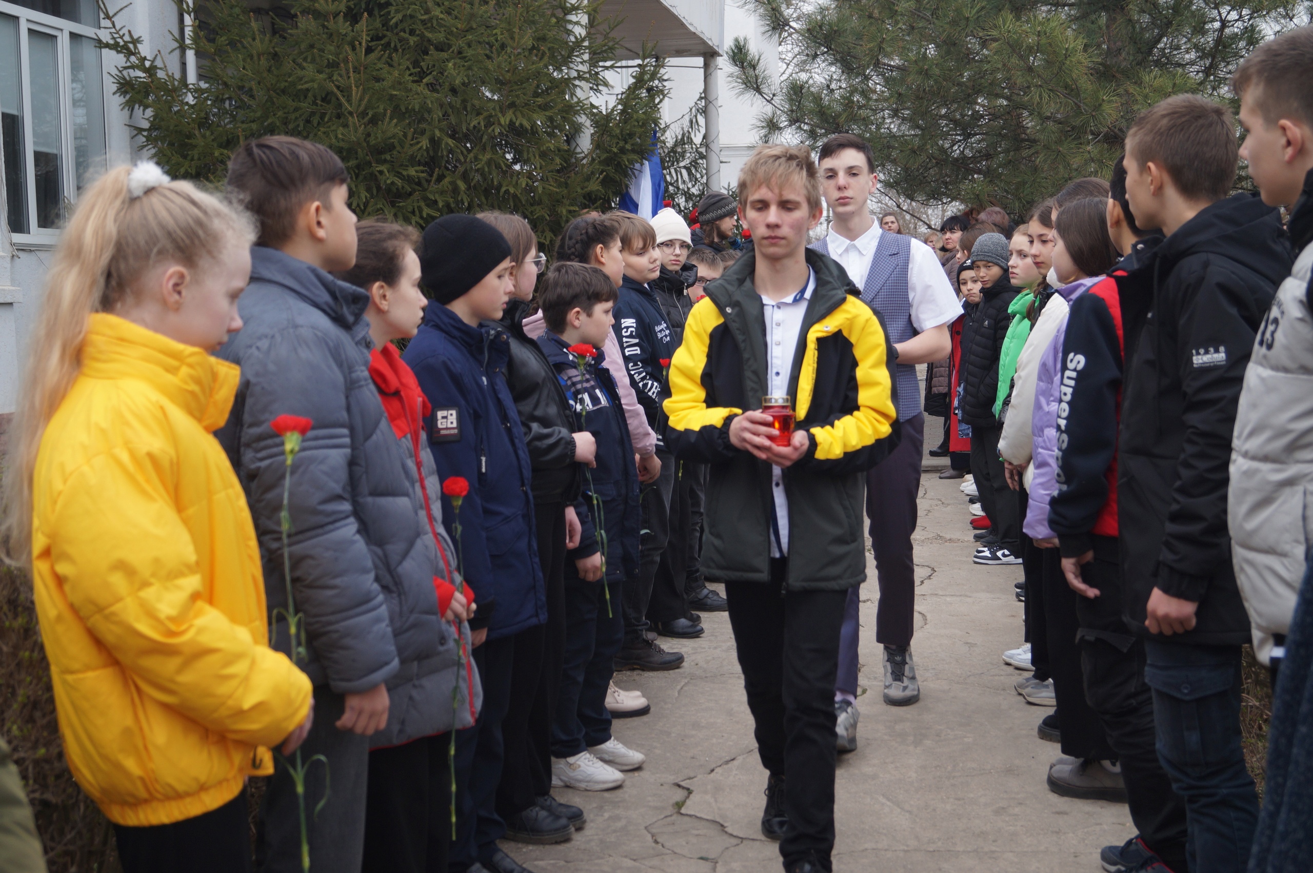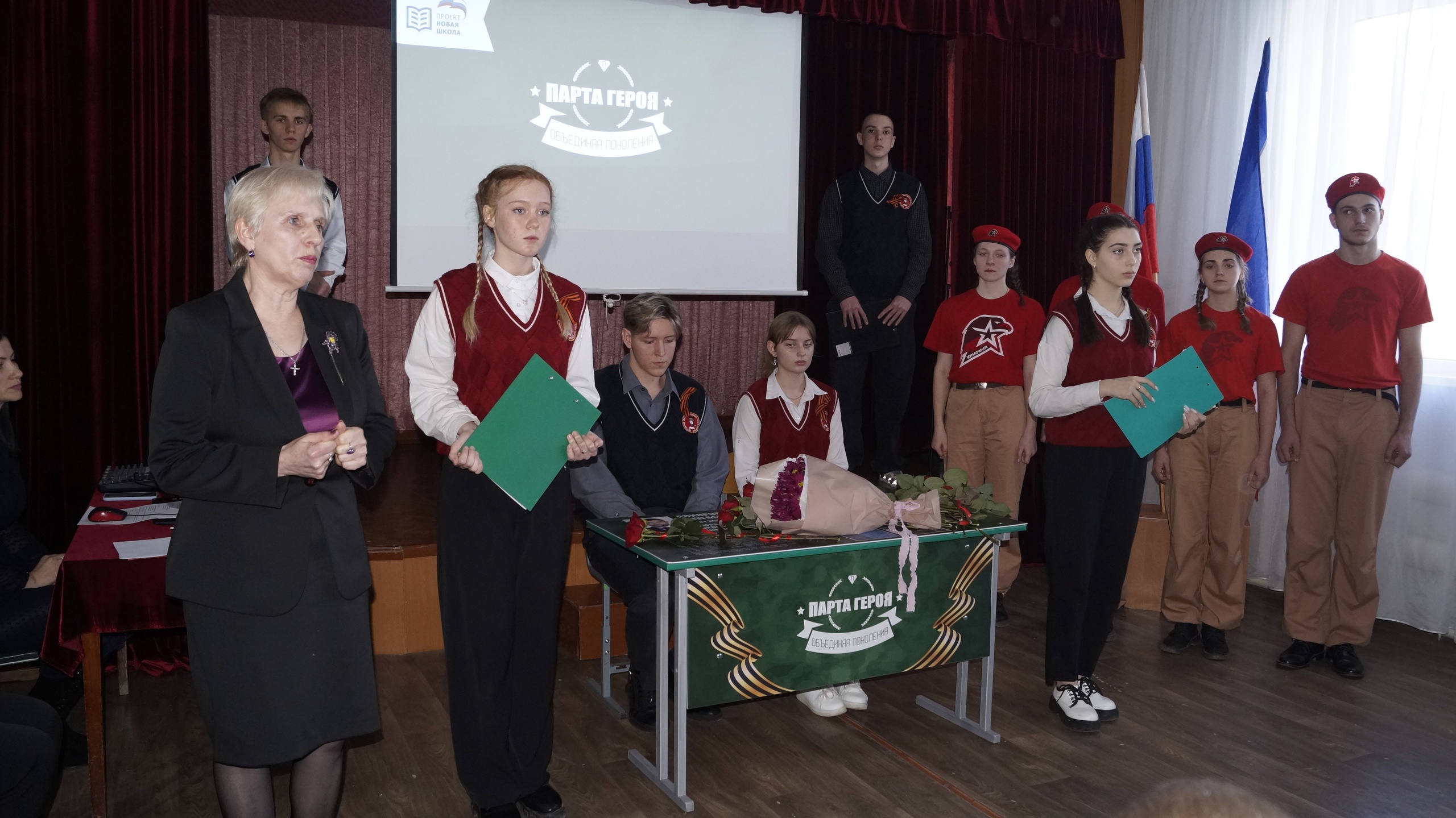 Участники мероприятия возложили цветы к мемориальной парте и почтили минутой молчания память всех героев, отдавших свои жизни во имя Родины.