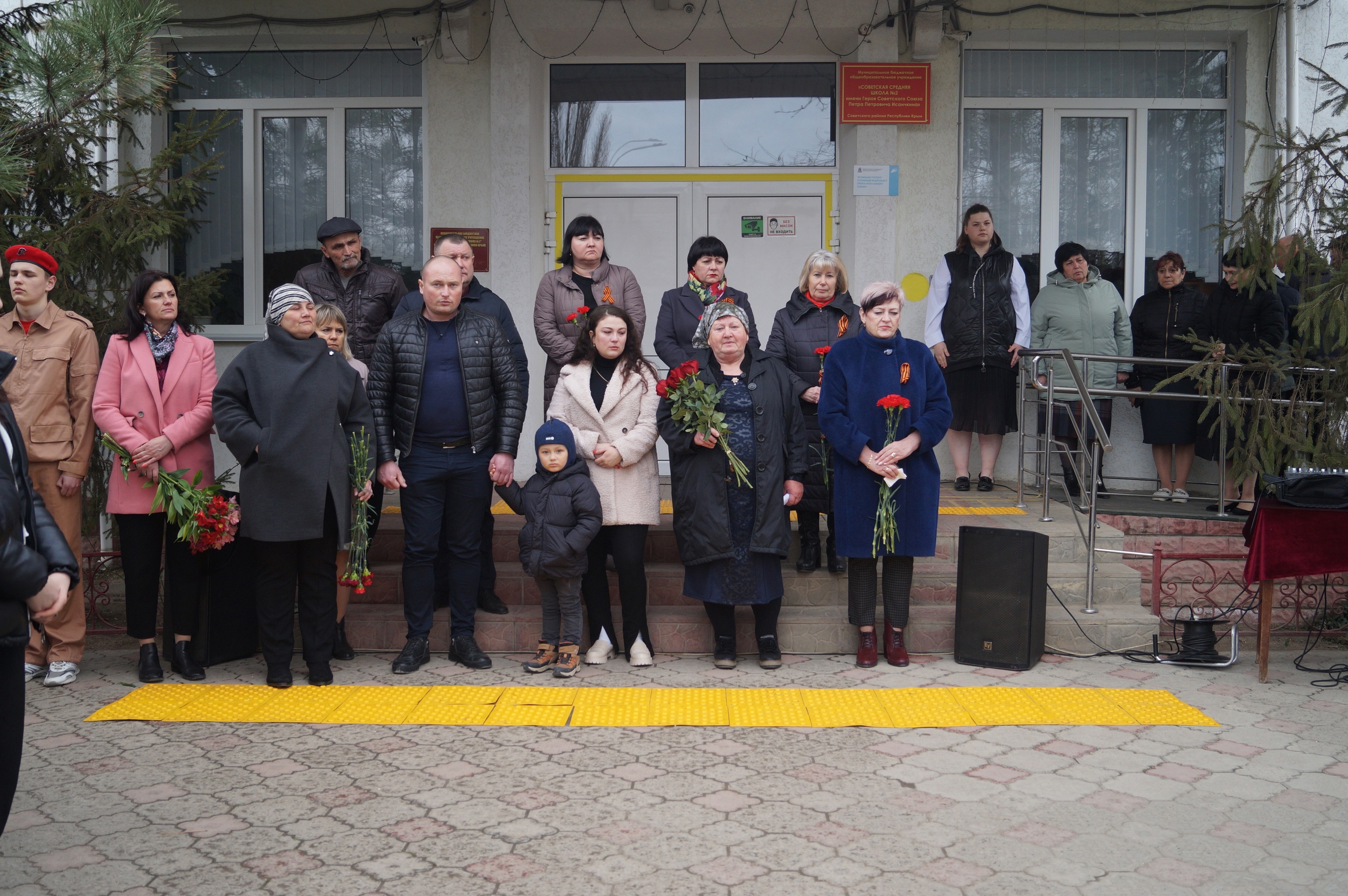 Почтить память и открыть «Парту Героя» пришли родные и близкие погибшего, руководитель Крымского отделения МОО «Союз добровольцев Донбасса» Виктор Аносов, председатель Советского районного совета Елена Пось, глава администрации Советского района Виктория Грицай, ученики и преподаватели школы.